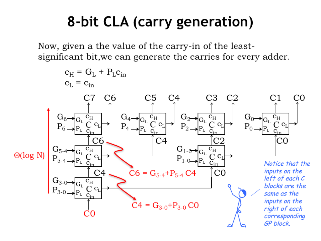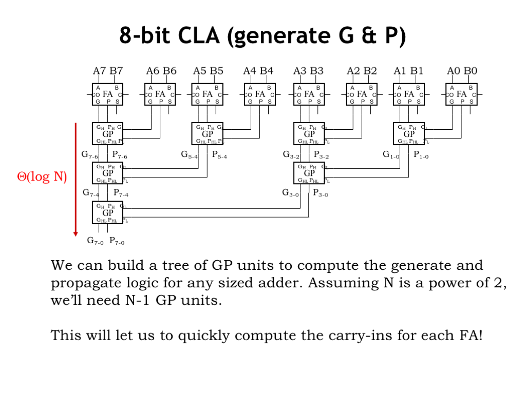 下图是一个8-bits的CLA的G&P generate的部分: