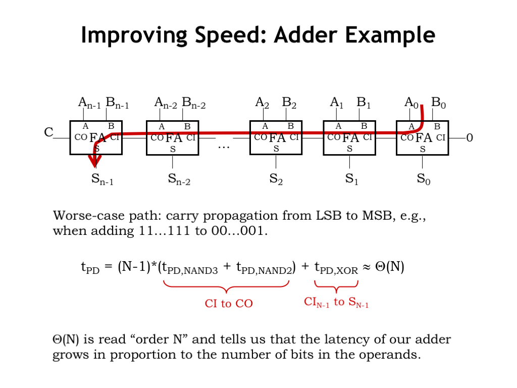 但是这样的$t_{PD}$是$\theta(N)$级别的。