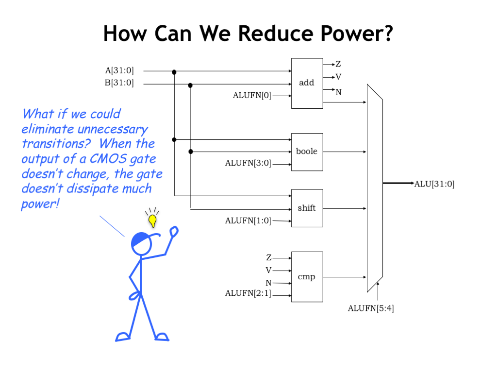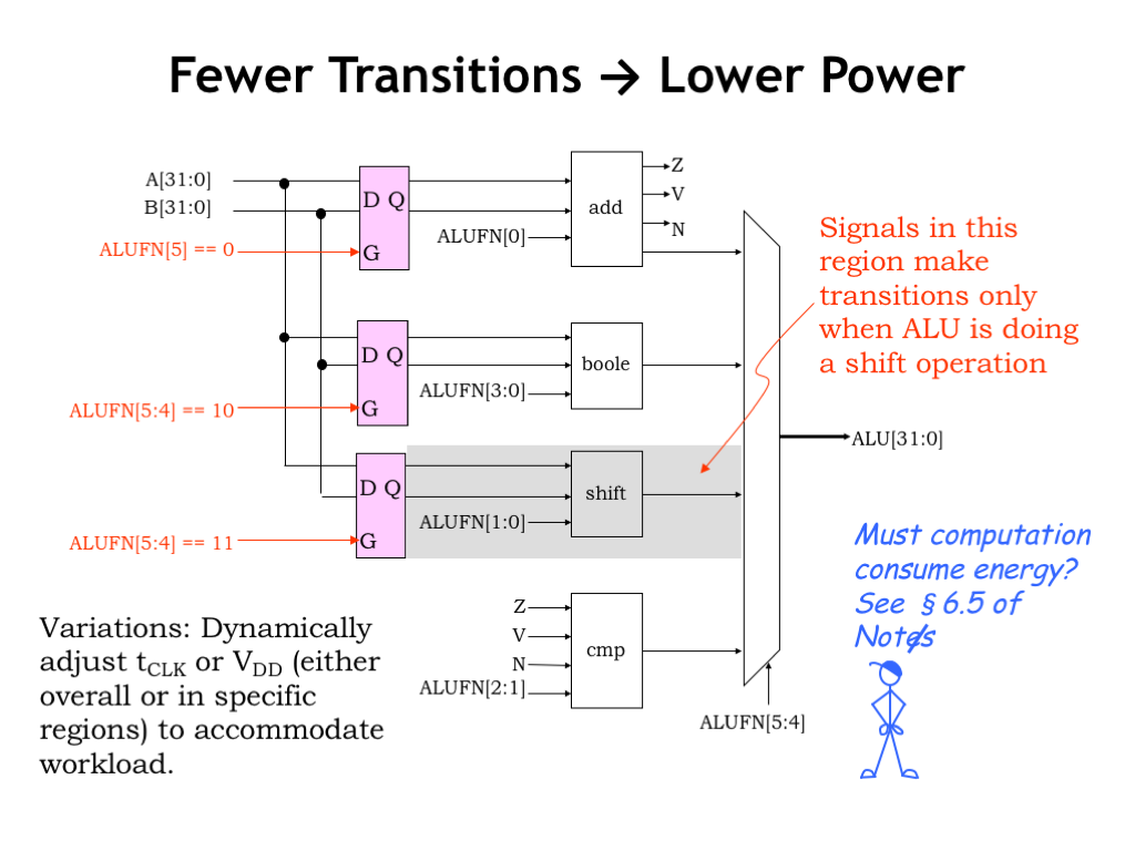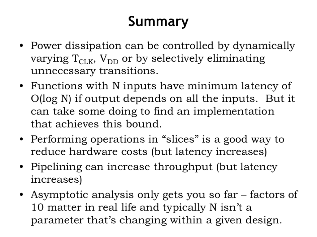 本章从CMOS的电能消耗出发,讲如何减少不必要的能量损失,同时也讲了很多时间和空间的tradeoff.