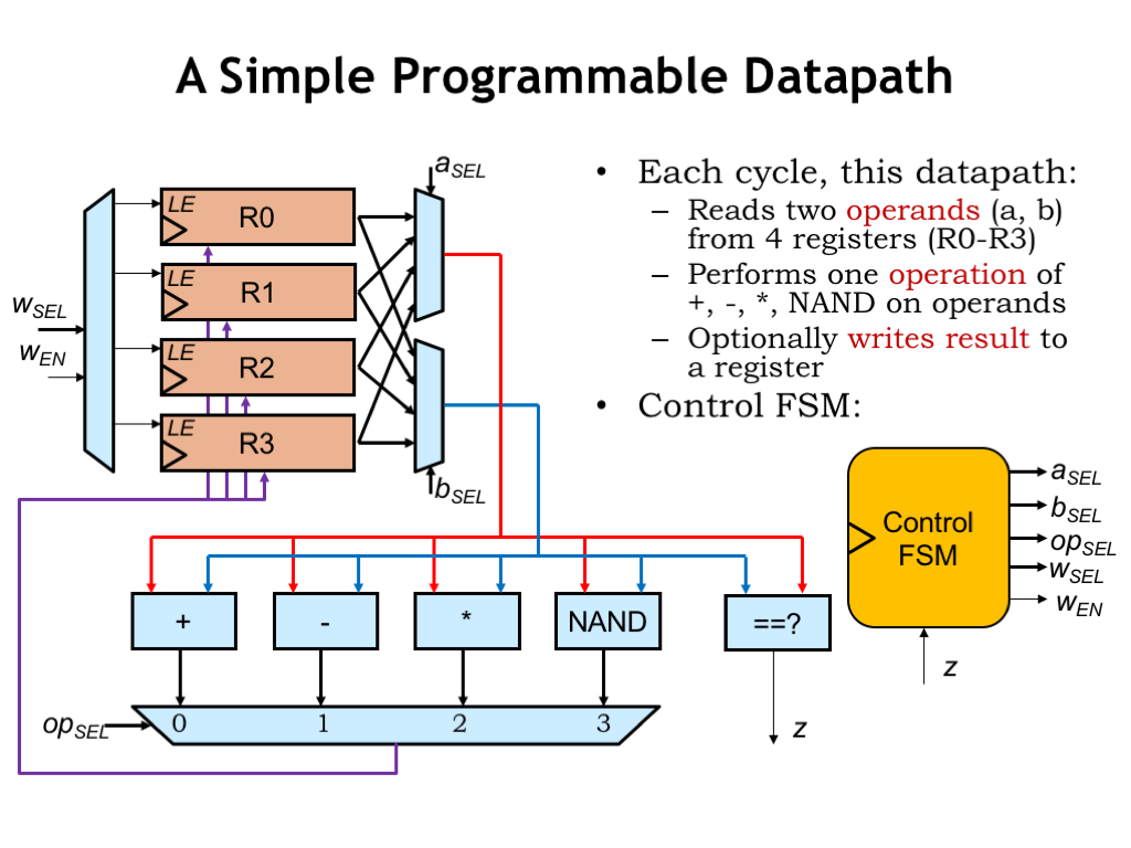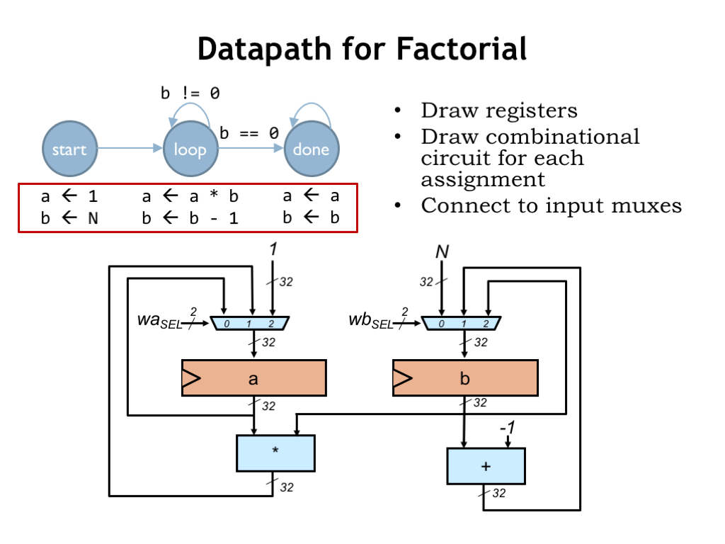Let’s start by designing the logic that implements the desired computations — we call this part of the logic the “datapath”.