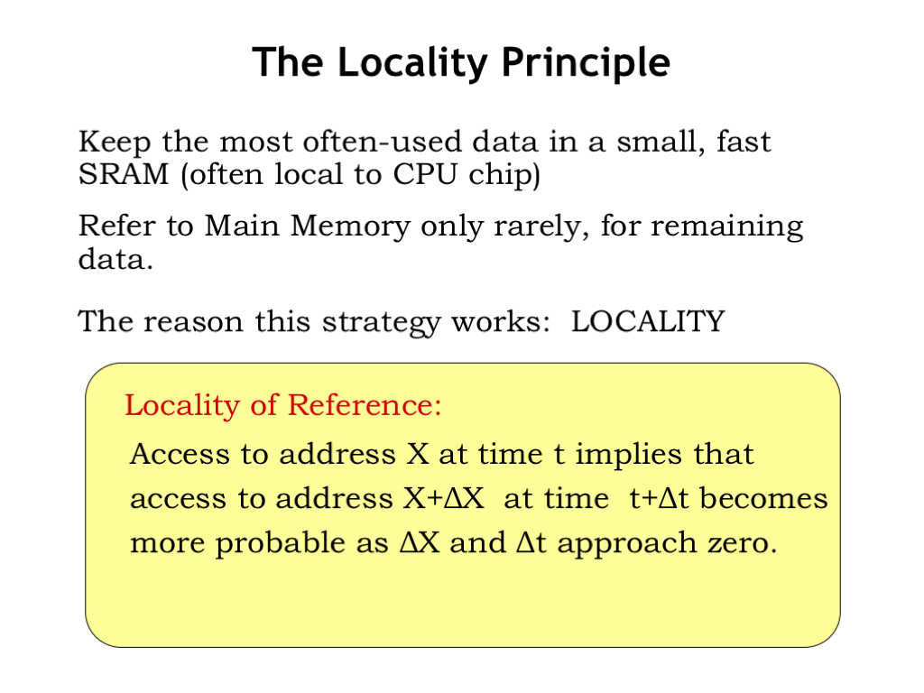 在现代CPU的架构中,主存一般是速度相对较慢但是体积更小的DRAM组成。不过CPU不会直接跟主存交换数据,在中间可能会有其他几层SRAM来充当缓存,以降低内存的平均访问时间。