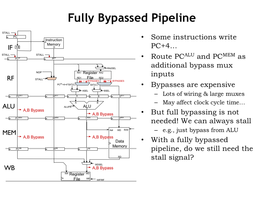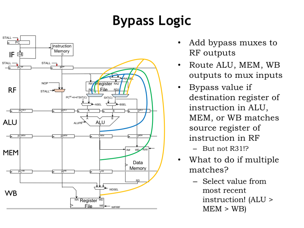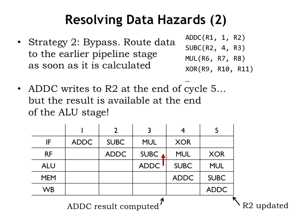 虽然每个指令只有在最后的Write Back阶段才会把数据写回寄存器或者内存, 但相关的值在前面的阶段就已经计算出来了, 所以可以直接把这些值bypass到可能需要的地方.