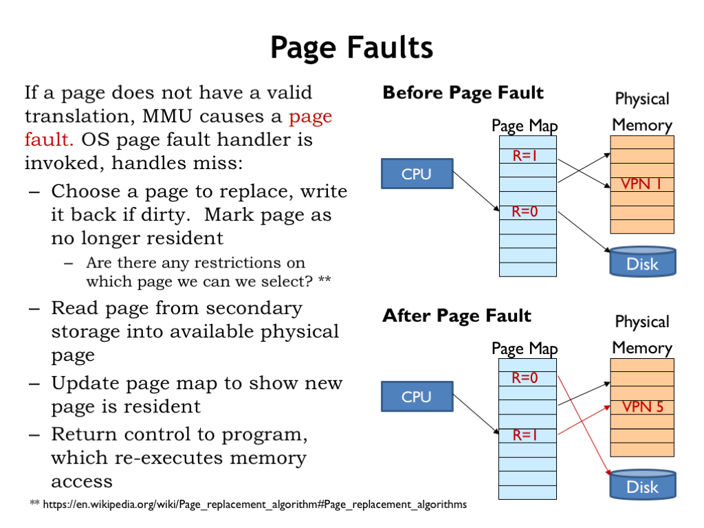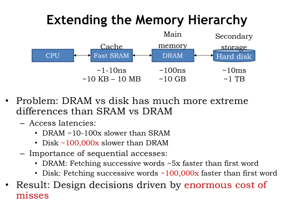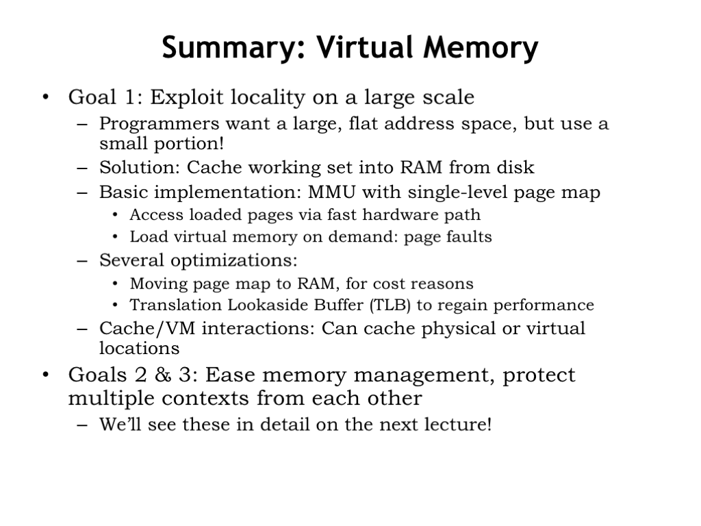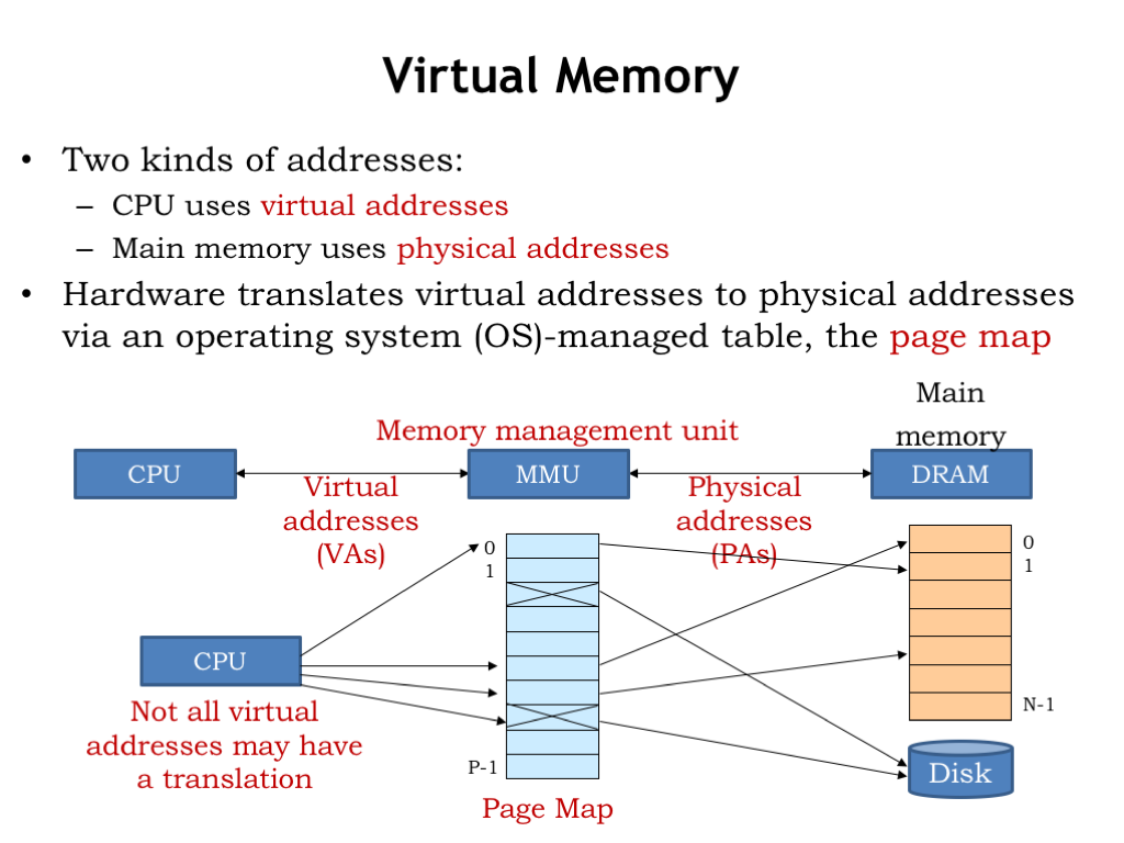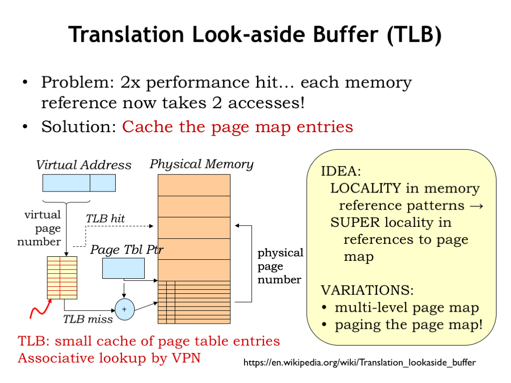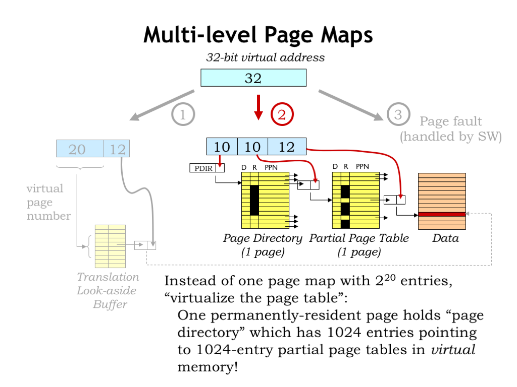 Virtual Memory 课程地址: https://ocw.mit.edu/courses/electrical-engineering-and-computer-science/6-004-computation-structures-spring-2017/c16/c16s1/ 本章主要讲了从硬盘加载数据到主存的策略, 从而引出了虚拟内存和页表. Extending the memory hierarchy Virtual Memory Page Map Translation look-aside buffer (TLB) Context Summary