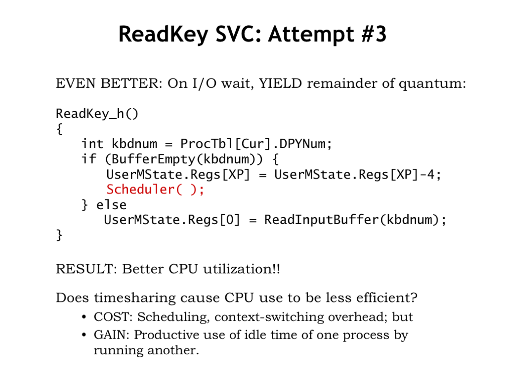 当IO请求没有收到回复时, OS在调度到该进程时还是会继续执行等待IO的指令.
