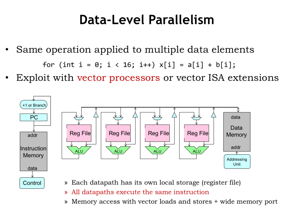 数据级并行主要是指像向量加法这种计算, 天生就能拆开运算的! 只需要提供多个ALU就行了, 目前主要是由GPU来做.