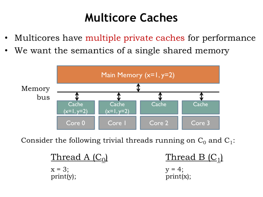 例如MESI protocal: https://en.wikipedia.org/wiki/MESI_protocol