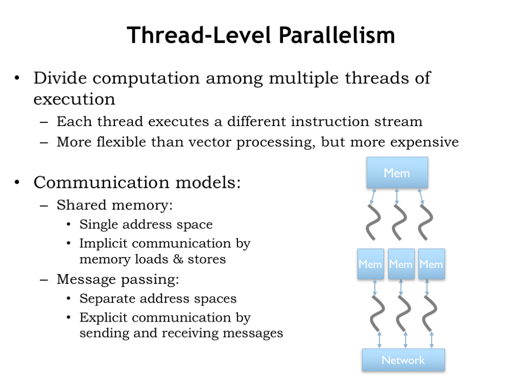 Using multiple independent cores to execute a parallel task is called thread-level parallelism (TLP), where each core executes a separate computation “thread”.